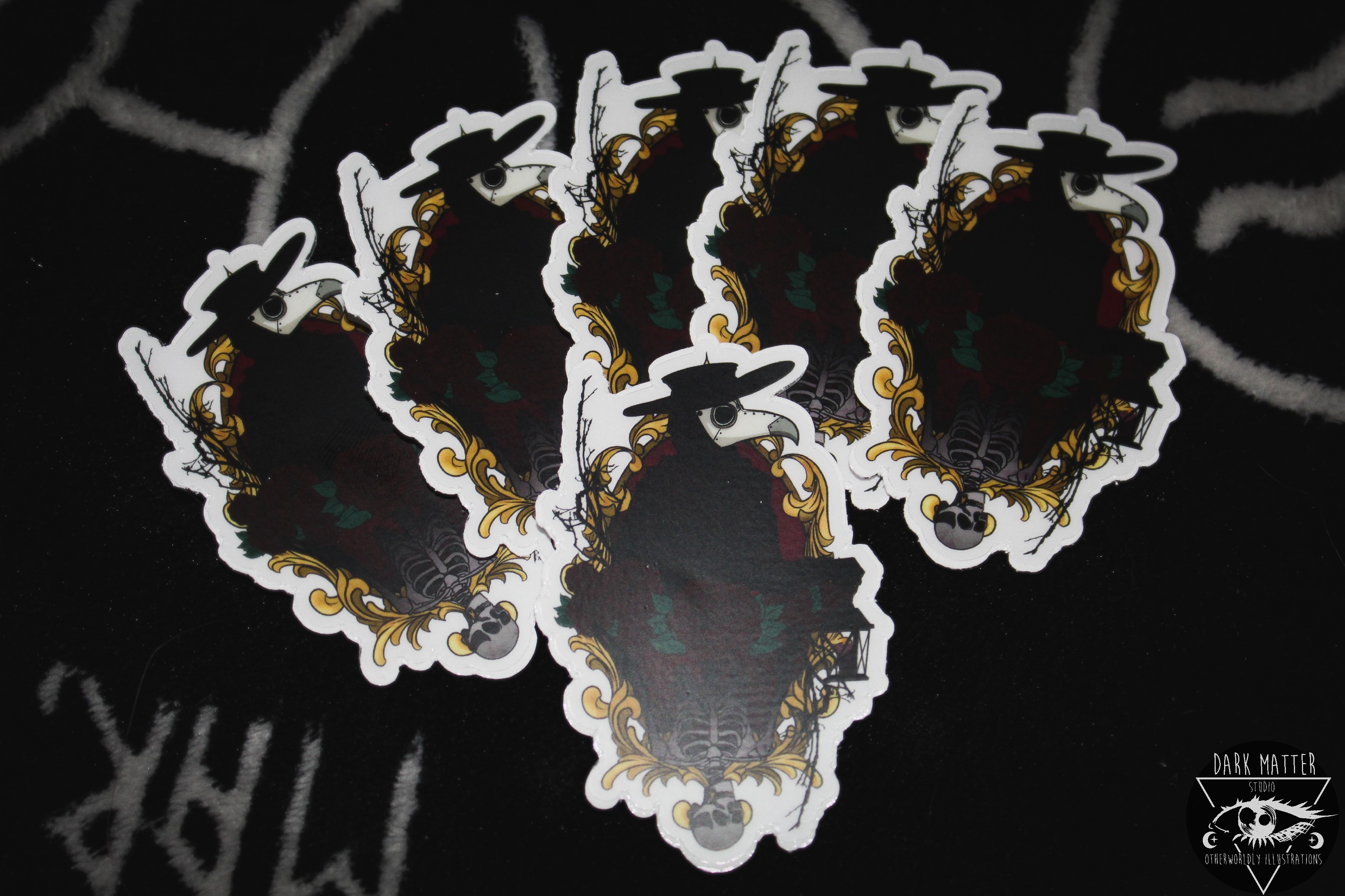 6 Feet Back or 6 Feet Under vinyl stickers are 2.5x3" in dimension, premium vinyl, and are finished with a protective laminate to protect them from wind, rain, and sunlight. You can place these stickers anywhere and they'll be okay~!