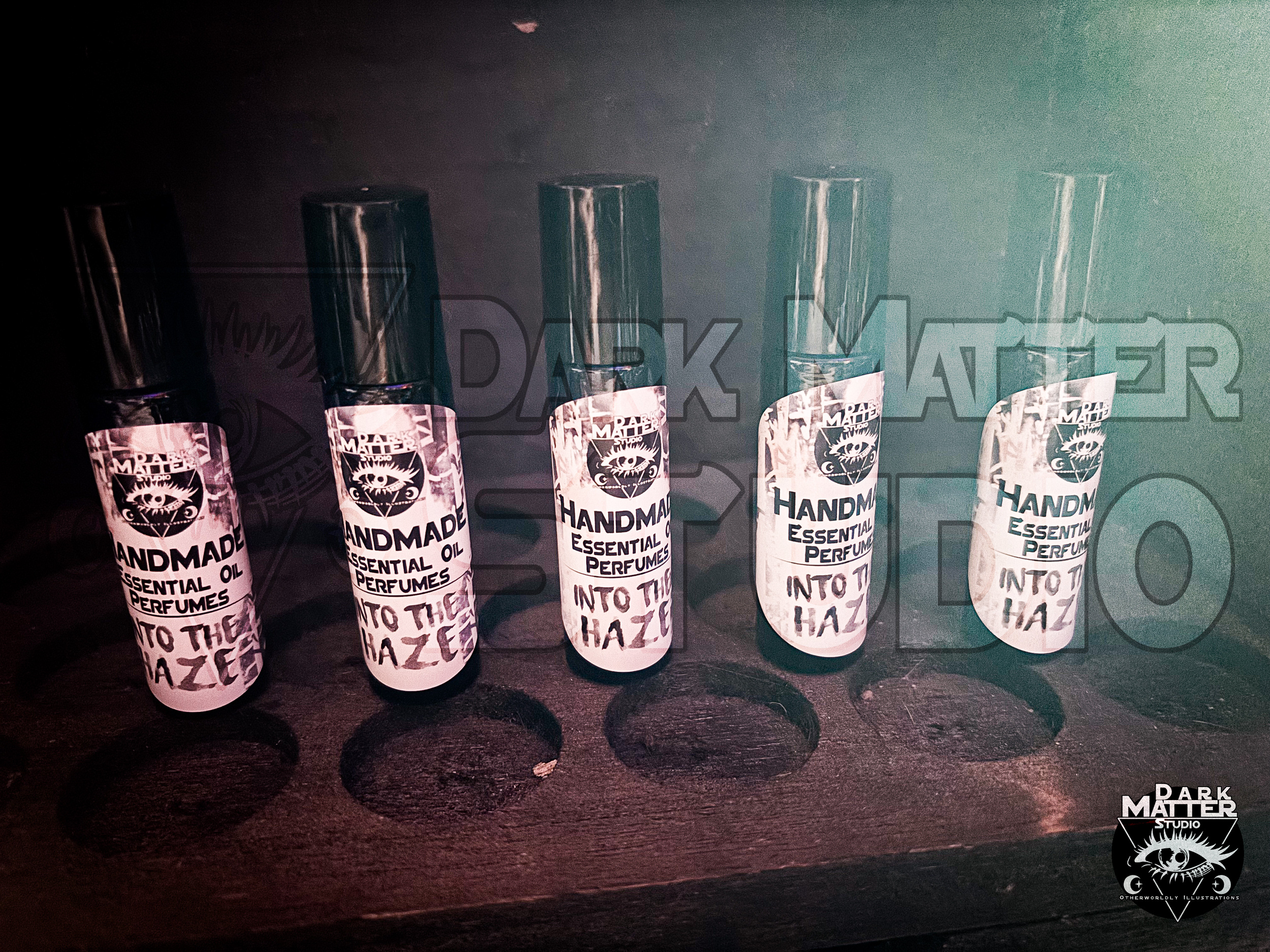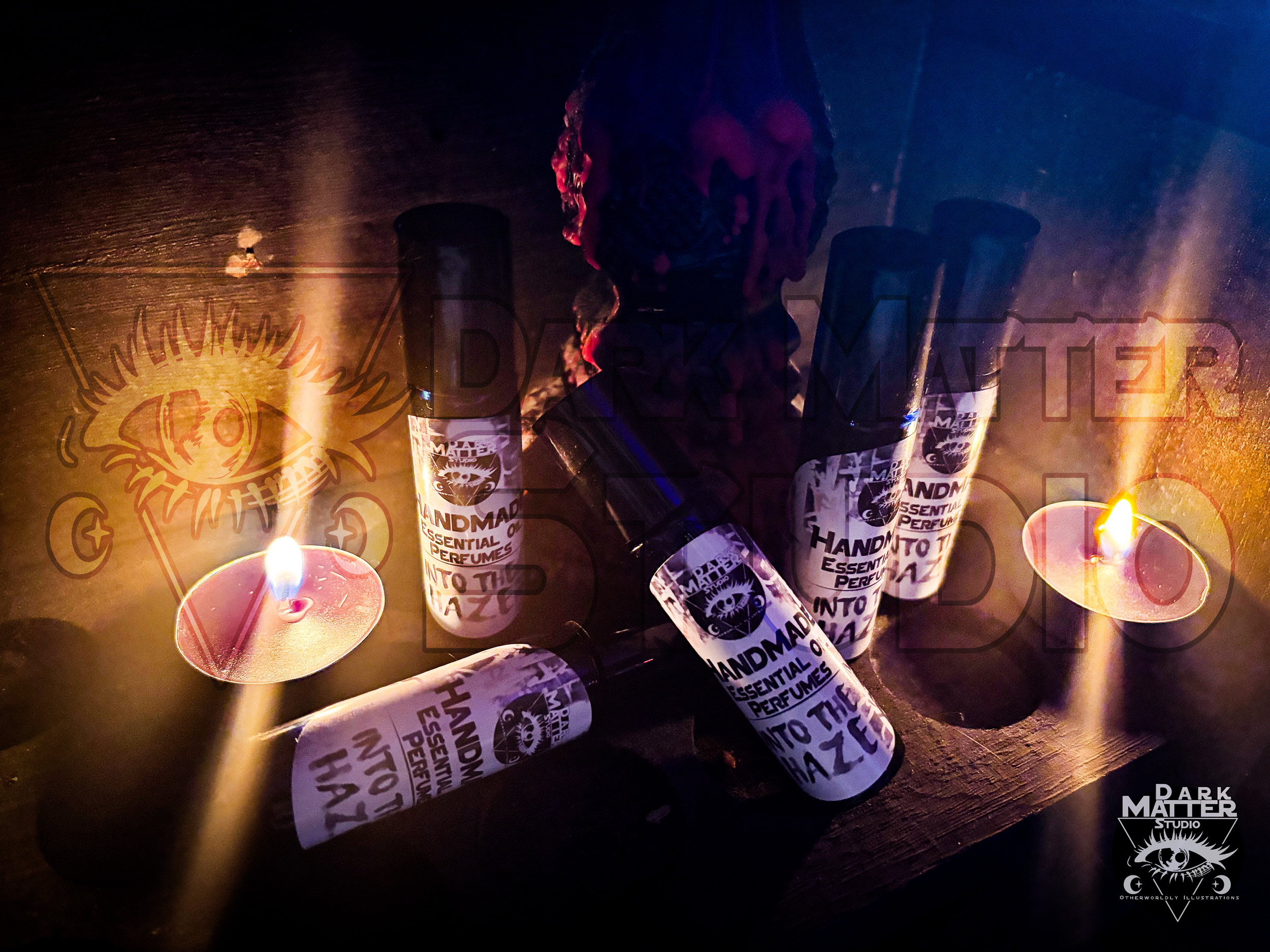 This is an original scent, as part of my Haunt series - all scents are inspired by different spooky, macabre, and all things dark in influence. As a haunted house actor I don't want to smell bad in a B.O. kind of way, but I find there aren't a lot of options and variety of perfumes/colognes/scents that don't come off as really pretty and nice. I want to smell bad in a good kind of way, and I hope to accomplish this with my haunt collection. This one in particular was originally a personal scent I whipped up together that I felt really complimented my character in my haunt scene. It's sickly sweet, while also hiding undertones of metallic rot; a fragrance that truly desires to trap you in the suffocating embrace of the thickening fog. Can you walk away?