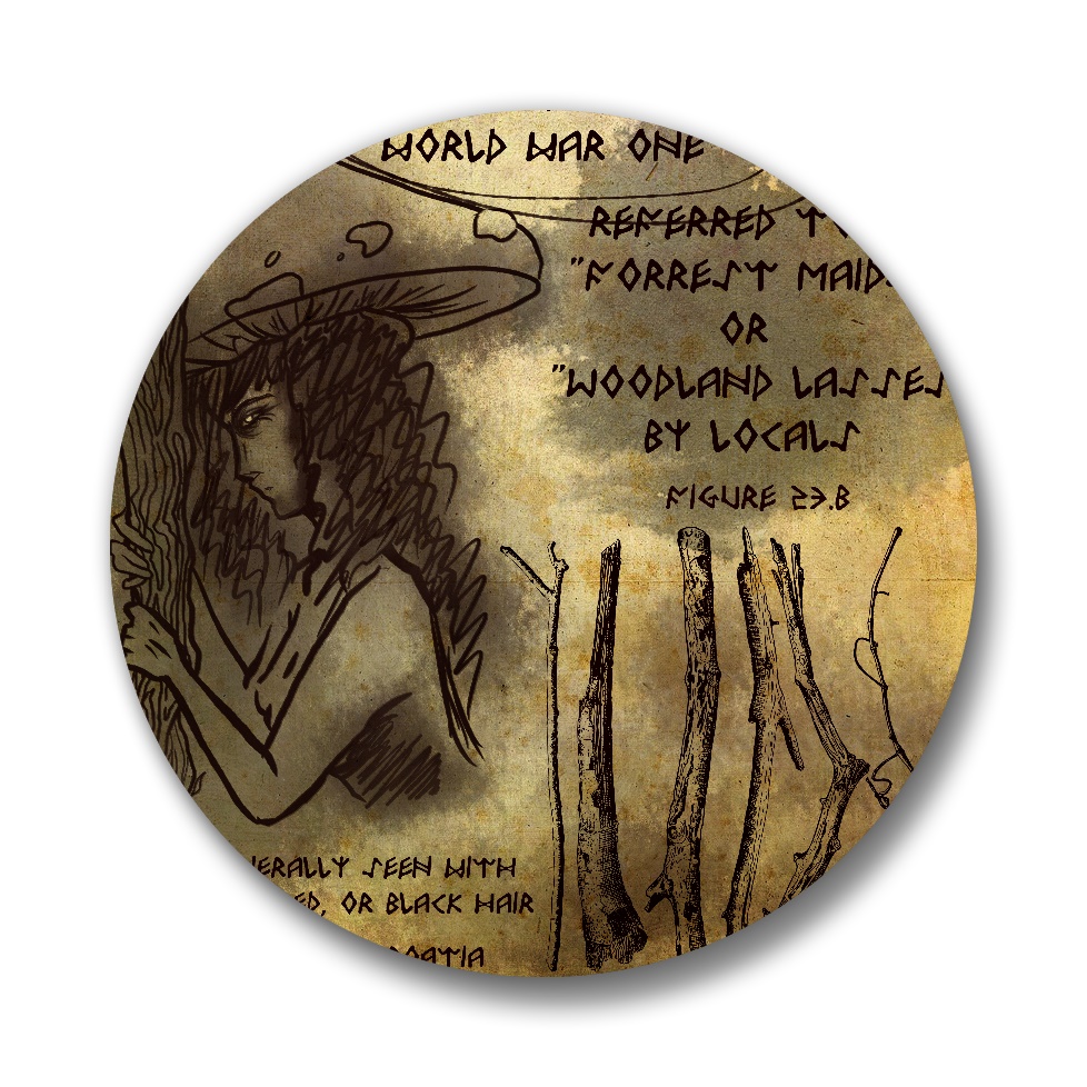 1.25" pinback button with a glossy finish Design of the Sumske Dekle from my Cryptid Studies series