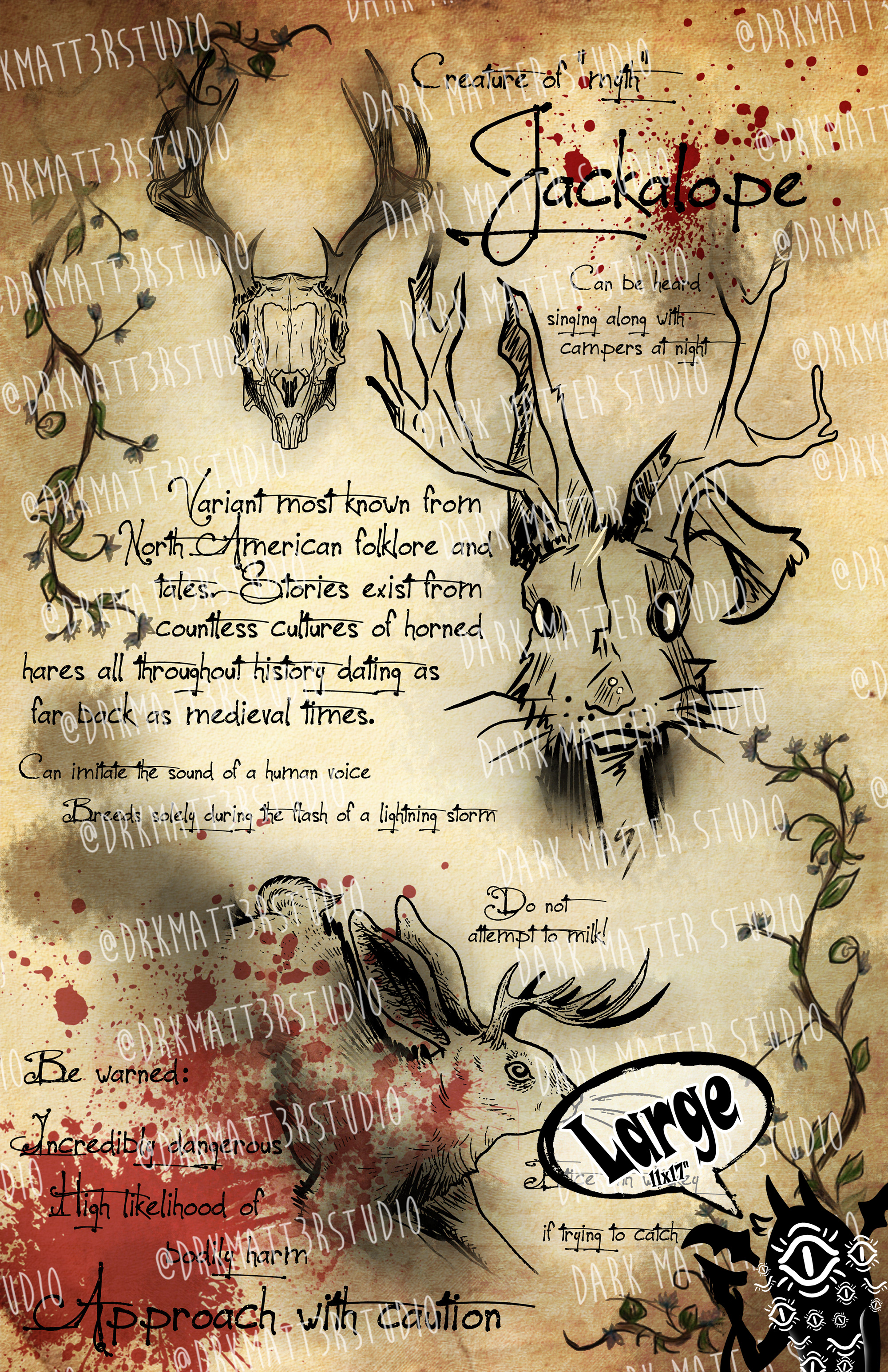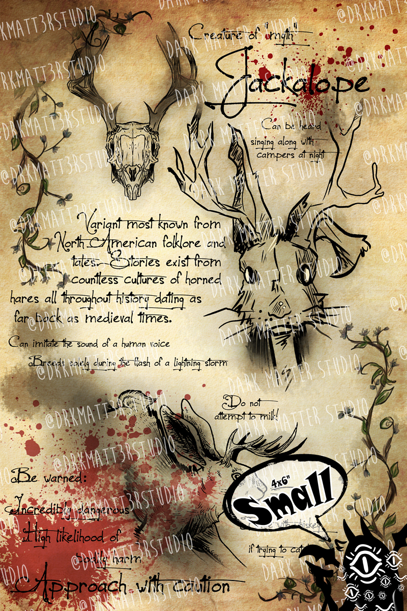 Original print design of mine, this design is of the cryptid known as the Jackalope, from my Cryptid Studies series. You can find the whole zine at my shop, but this listing is for posters of this design specifically.