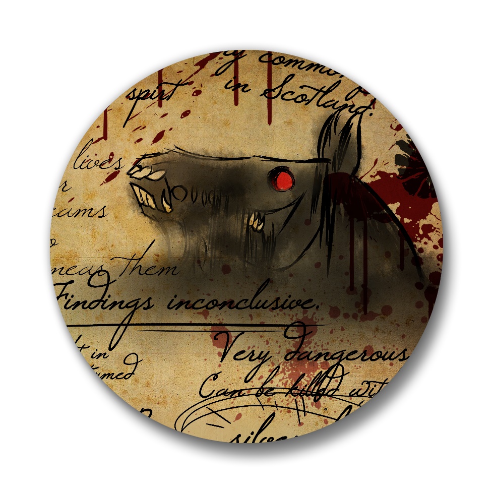 1.25" pinback button with a glossy finish Design of the Kelpie from my Cryptid Studies series