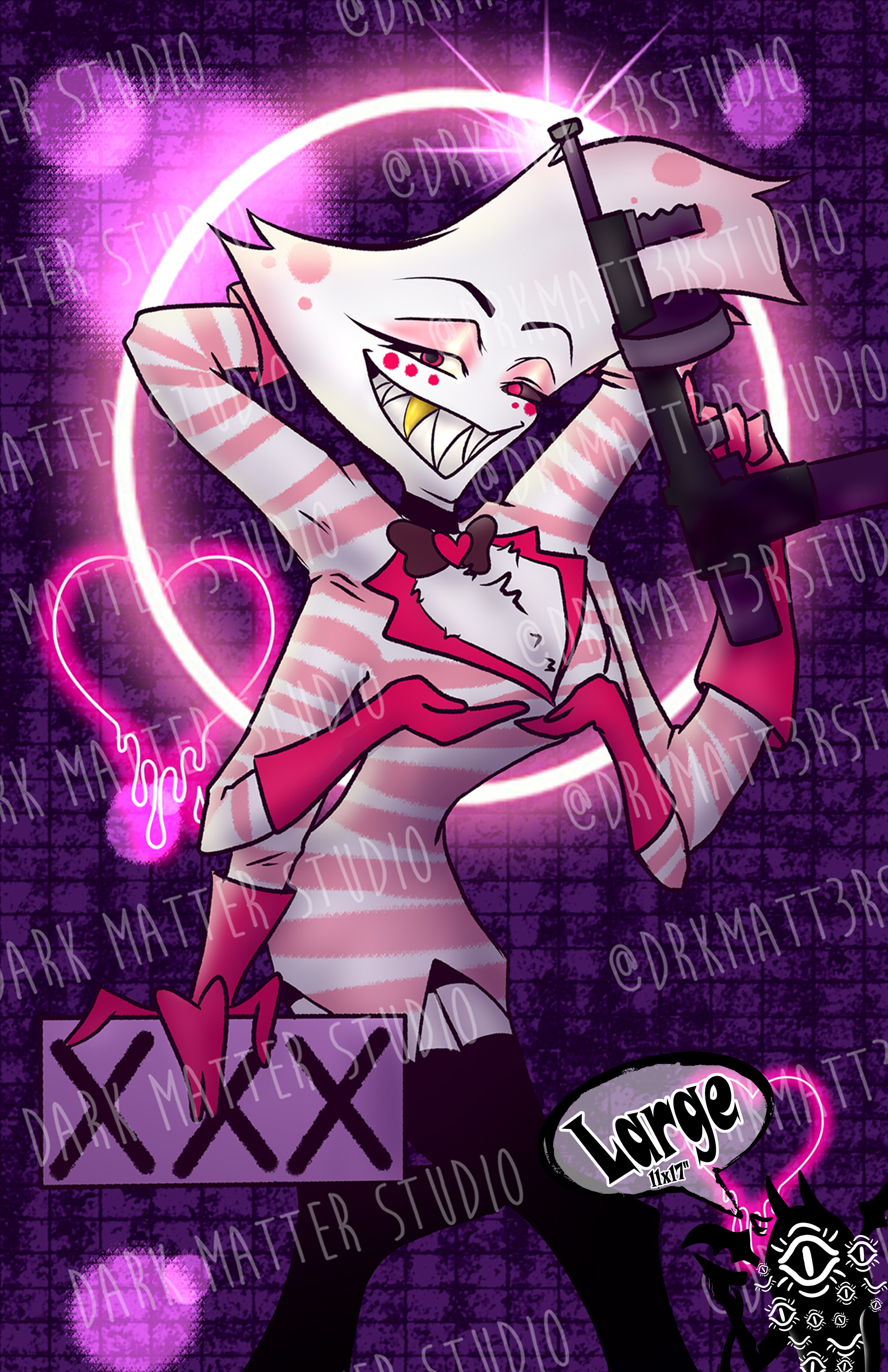 Prints of a fan-inspired design of Angel Dust, the Spider in the Kinky Boots, from the hit YouTube and Prime series, Hazbin hotel.